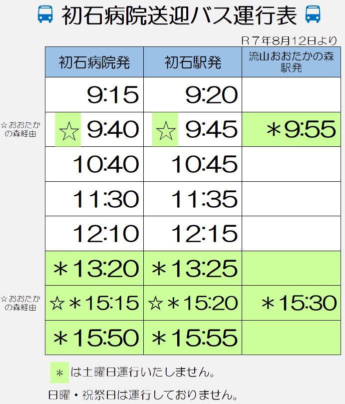 江戸川台駅より東武バスにて5分、初石病院前下車。